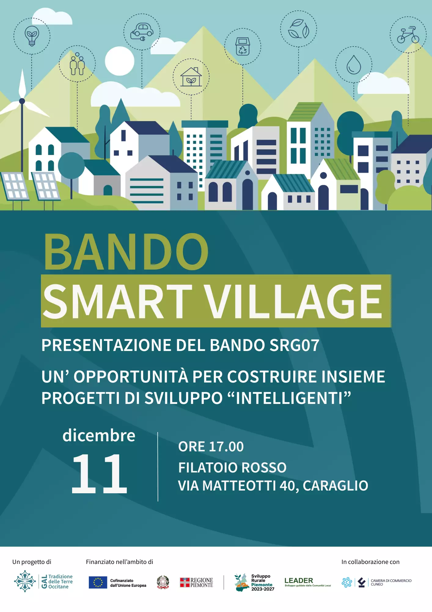 Il GAL Tradizione delle Terre Occitane è lieto di invitare gli enti locali, le imprese, le associazioni del territorio e tutti i soggetti interessati alla presentazione del Bando “Smart Village” che si terrà giovedì 11 dicembre 2025 alle ore 17.00 presso il Filatoio Rosso di Caraglio (via Matteotti 40, CN).